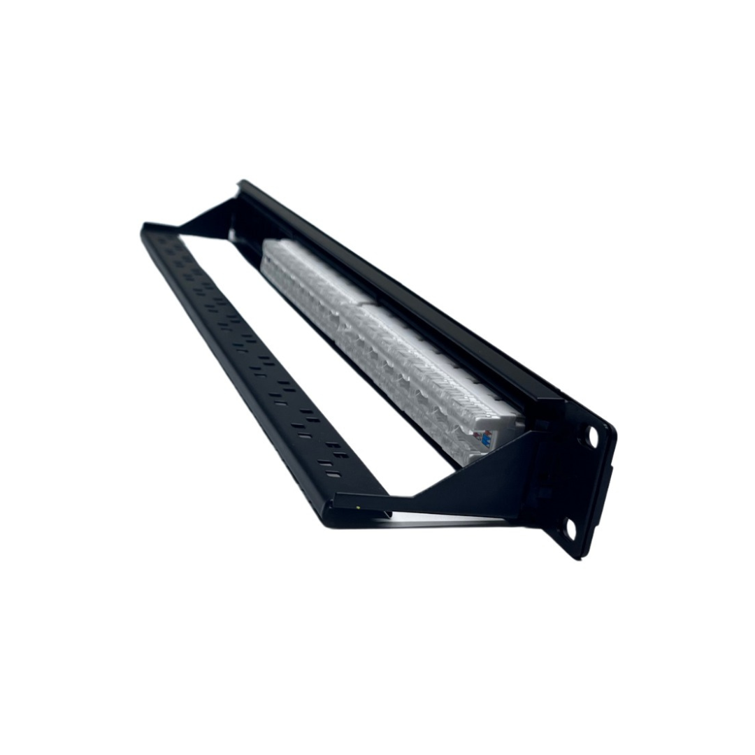 Supporting unshielded Cat6 cabling, the Cat6 UTP patch panel allows flexible, clutter-free installation in structured cabling systems. It is ideal for use in VoIP networks, IP surveillance, HD video transmission, and Gigabit Ethernet infrastructure. When deployed in multiple racks, these Cat6 patch panels simplify cable organization and reduce bulk while delivering exceptional signal performance.